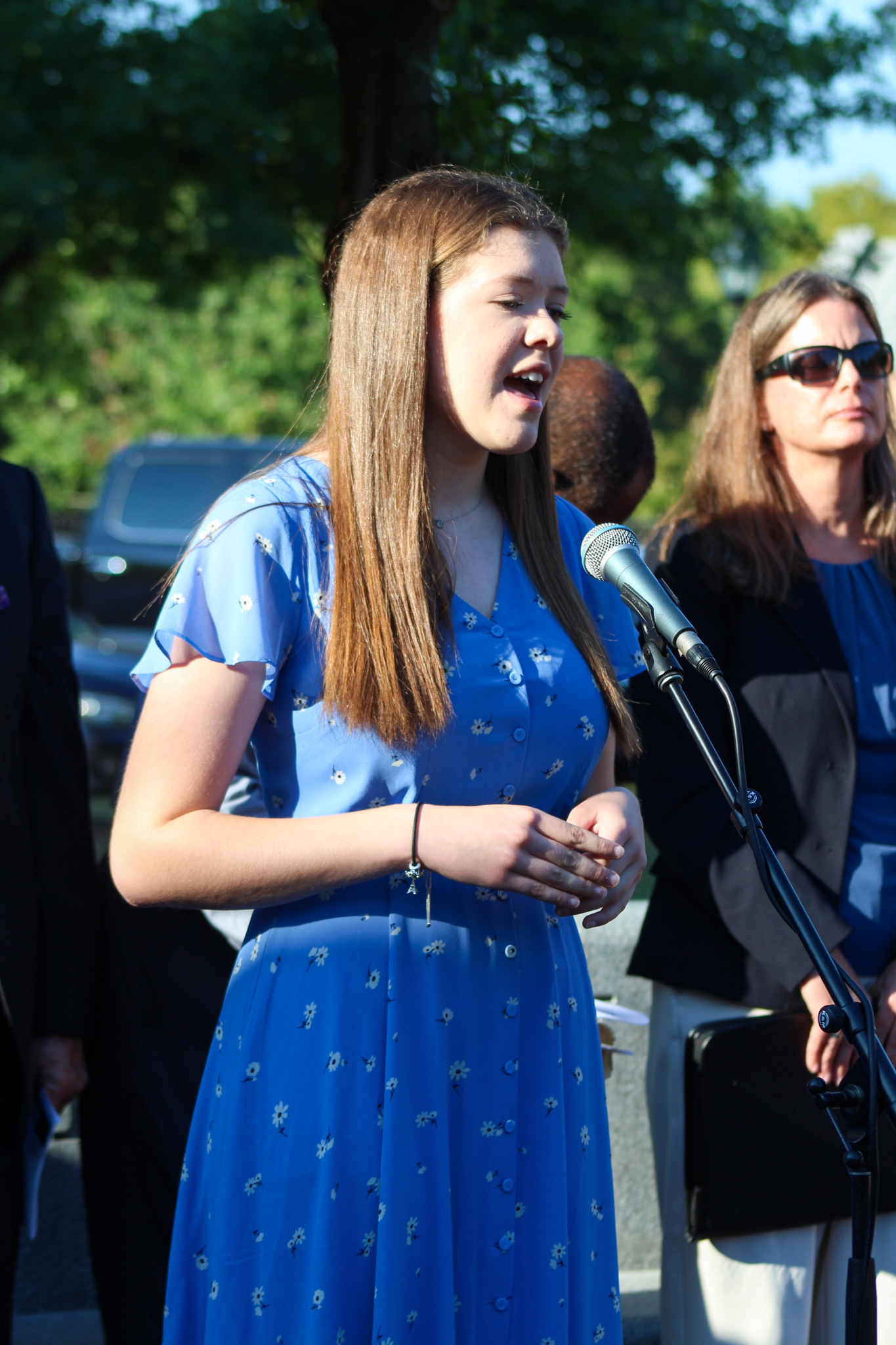 Thalia Turner, student at St. Michaels Middle-High School sings “Star Spangled Banner”.